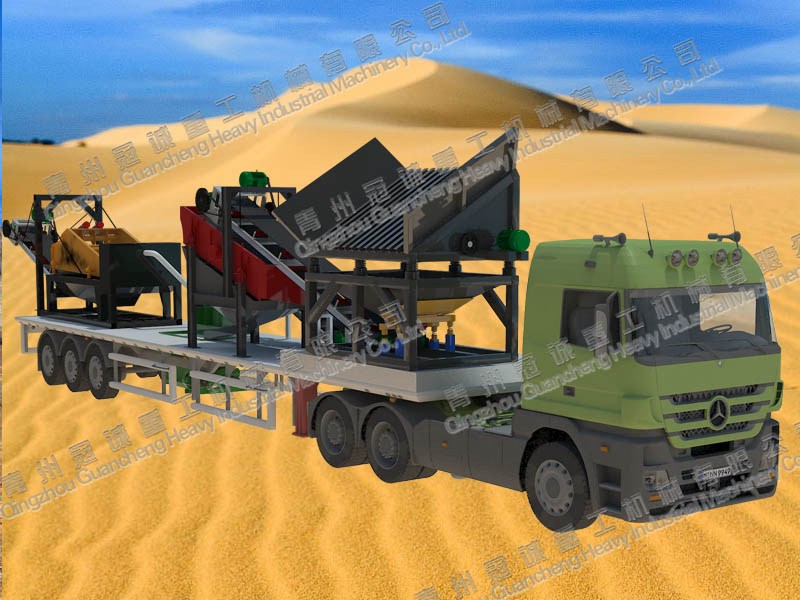本套移動(dòng)破碎站為移動(dòng)式三次分離破碎制砂設(shè)備,處理量為每小時(shí)60-100立方,本移動(dòng)破碎制砂設(shè)備是青州冠誠重工機(jī)械有限公司獨(dú)立設(shè)計(jì)制作而成,直接采用17.5米半掛車底盤改裝制作,基優(yōu)勢如下: